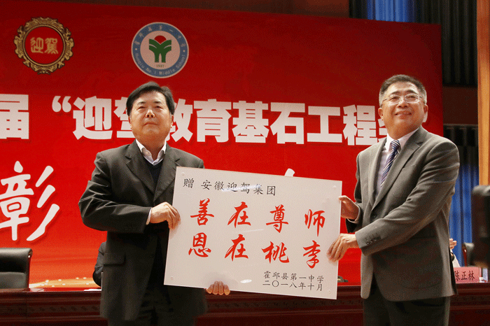 王暉代表霍邱縣委、縣政府向迎駕表示衷心感謝,向霍邱一中獲獎(jiǎng)師生表示熱烈祝賀。她指出,縣委、縣政府高度重視教育事業(yè),大力扶持,全縣教育事業(yè)呈現(xiàn)出蓬勃發(fā)展的良好局面。王暉高度贊揚(yáng)了迎駕集團(tuán)與倪永培的慷慨義舉,要求霍邱一中在教育、教學(xué)等方面再創(chuàng)佳績。