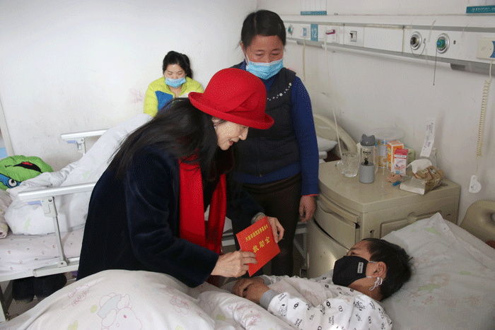 得知這一情況后,迎駕慈善基金會立即行動起來,向這群“口罩天使”伸出了援手。1月12日一大早,迎駕慈善基金會副理事長兼秘書長張華帶著愛心和善款,冒著大霧從霍山專程驅(qū)車趕到合肥,看望10名“口罩天使”,并為他們送上新年的祝福。