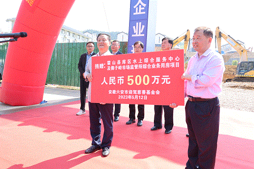 5月12日,霍山縣庫區(qū)水上服務(wù)中心及佛子嶺市場監(jiān)管所項(xiàng)目捐贈儀式舉行,霍山副縣長鮑耿磊,縣城管執(zhí)法局局長饒猛、縣水上執(zhí)法局局長汪泊濤,安徽迎駕貢酒股份有限公司董事長倪永培,迎駕慈善基金會理事長張平、副理事長張華,迎駕慈善基金會秘書長朱紅霞、副秘書長呂小紅等出席儀式。
