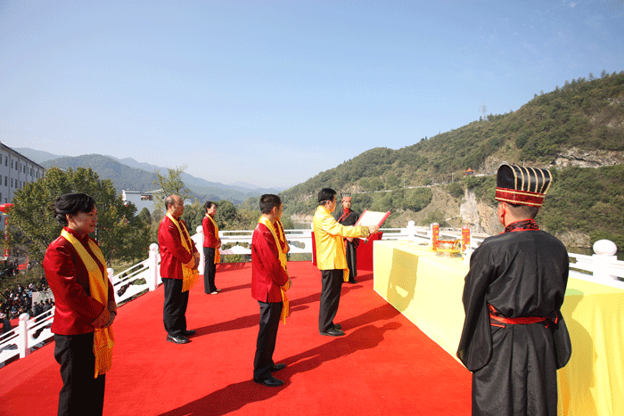 隨著古典禮樂(lè)的響起,主禮官宣布拜山祭水禮典儀式正式開(kāi)始。在全場(chǎng)嘉賓的注目下,祭拜主禮中國(guó)釀酒大師、全國(guó)人大代表、全國(guó)勞動(dòng)模范、迎駕集團(tuán)總裁倪永培率領(lǐng)迎駕釀造團(tuán)隊(duì)緩步走上祭臺(tái),向大別山的青山綠水致以迎駕人最崇高的感激、敬畏之情。本次祭拜儀式全部沿襲傳統(tǒng)禮制,祭祀人員肅身正心,以最純凈的天然剮水凈手潔心,摒棄雜念執(zhí)香行禮,為迎駕、為霍山人民虔誠(chéng)祈福。主禮倪總面朝山水恭誦禮典,并以迎駕生態(tài)美酒敬拜天地。在禮官“感恩禮成”的宣告聲中,活動(dòng)現(xiàn)場(chǎng)嘉賓全體起立,面向祭祀臺(tái),與祭祀人員一同鞠躬、行禮,感恩天地人。