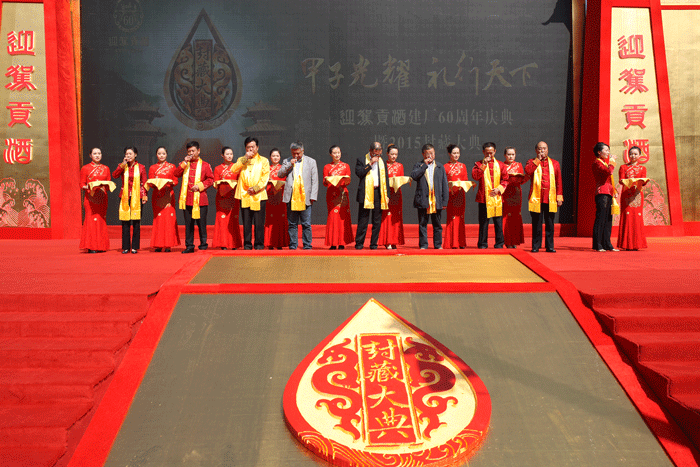 十月的迎駕,流光溢彩,大地涌金。10月18日,迎駕貢酒建廠(chǎng)60周年慶典暨2015封藏大典在最美酒鄉(xiāng)——迎駕集團(tuán)盛大開(kāi)啟。省市縣領(lǐng)導(dǎo)楊光祥、周勇、束學(xué)龍、李中華等,中國(guó)食品工業(yè)協(xié)會(huì)副秘書(shū)長(zhǎng)馬勇,江南大學(xué)副校長(zhǎng)、著名白酒專(zhuān)家徐巖,中國(guó)釀酒大師、著名白酒專(zhuān)家張宿義,以及來(lái)自國(guó)內(nèi)酒業(yè)界的領(lǐng)導(dǎo)、專(zhuān)家、學(xué)者和全國(guó)各地的迎駕經(jīng)銷(xiāo)商及社會(huì)各界人士共約2000余人齊聚迎駕,共同見(jiàn)證這一莊嚴(yán)隆重的慶典儀式。央視著名主持人趙普也傾情助力,全程主持大典,與全體迎駕人共同回顧迎駕60年的艱辛和榮耀,共同品味迎駕美酒的神韻和風(fēng)采。