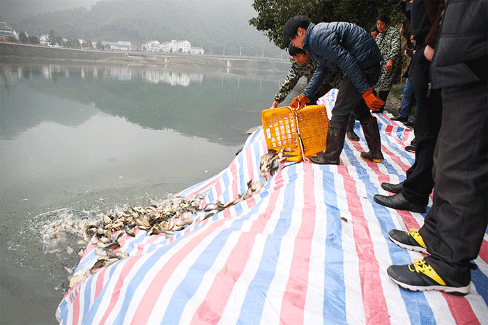 1月13日,霍山縣漁業(yè)資源增殖放流2016年春季魚苗投放儀式在佛子嶺水庫舉行,縣農(nóng)委主任張方應(yīng)、佛子嶺鎮(zhèn)負(fù)責(zé)人,集團副總裁、工會主席程培華出席儀式。據(jù)了解,此次共投放鯽魚、扁花等兩大類魚苗10萬尾。