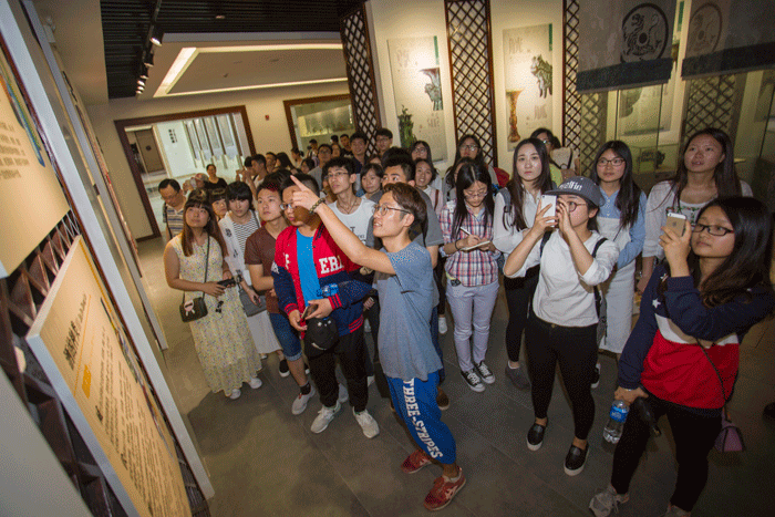 在迎駕酒文化博物館,通過講解員的細(xì)致講解,讓大學(xué)生們了解了迎駕貢酒悠久的發(fā)展歷史和深厚的文化底蘊,感受到全體迎駕人把一個山區(qū)小廠發(fā)展成為上市公司,披荊斬棘、艱苦卓越的奮斗歷程。隨后,在漢風(fēng)古韻的琴房,大家集中觀看了迎駕宣傳片、廣告片,企劃處負(fù)責(zé)人還介紹了迎駕獨特的品牌理念,厚重的歷史文化,以及最美酒鄉(xiāng)獨一無二的生態(tài)優(yōu)勢,迎駕貢酒以質(zhì)量取勝、不斷提升品牌價值的理念。