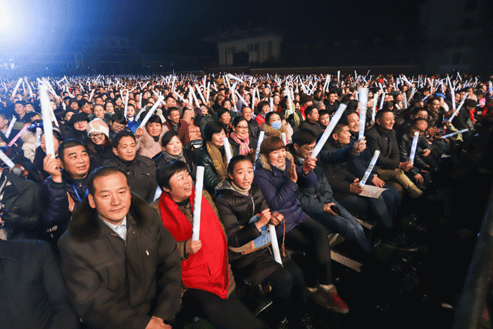 全場(chǎng)倒計(jì)時(shí)聲中,閃爍的燈光點(diǎn)亮了夜空,,酷炫的燈光秀拉開了演唱會(huì)的大幕。在全場(chǎng)歌迷翹首期待下,新生代組合SISP首先登臺(tái),獻(xiàn)上了《大藝術(shù)家》、《畢業(yè)舞會(huì)》等甜美歡快的歌。金寨老鄉(xiāng)江源東隨后帶來(lái)了《昨夜小樓又東風(fēng)》、《青花瓷》等經(jīng)典歌曲,歡欣舒暢的歌聲令全場(chǎng)樂(lè)迷沉醉在微醺的中國(guó)風(fēng)中。著名男高音歌唱家王躍武深情演繹了《再見(jiàn)了大別山》、《咱老百姓》、《家和萬(wàn)事興》等歌曲,高亢歌聲中的細(xì)膩情感打動(dòng)了現(xiàn)場(chǎng)每一名觀眾。原黑豹樂(lè)隊(duì)主唱秦勇的登臺(tái),點(diǎn)燃了現(xiàn)場(chǎng)樂(lè)迷心中的火焰,《無(wú)地自容》、《一起長(zhǎng)大》等激情滿懷的搖滾樂(lè)驅(qū)散寒風(fēng),讓現(xiàn)場(chǎng)一片火熱。被歌迷譽(yù)為心靈歌后的云菲菲帶來(lái)了《邂逅》、《小小新娘花》等充滿韻味和美感的歌曲。迎駕的老朋友冷漠除了獻(xiàn)唱《飛吧》、《傷心城市》等耳熟能詳?shù)母枨?,還現(xiàn)場(chǎng)抽出了100名幸運(yùn)觀眾,為他們送上了醉得慢、醒得快、有點(diǎn)甜的迎駕洞藏酒。內(nèi)蒙古民族音樂(lè)新生代接班人呼斯楞帶來(lái)了《莫尼山》、《請(qǐng)到草原來(lái)》等歌曲,滄桑粗獷、韻味悠長(zhǎng)的歌聲引人遐想沉醉。熟悉的旋律聲中,鳳凰傳奇組合登上舞臺(tái),將全場(chǎng)氣氛推向最高潮,《荷塘月色》、《最炫民族風(fēng)》等膾炙人口的歌曲讓現(xiàn)場(chǎng)集體舞動(dòng),熒光棒和歌聲蕩漾整個(gè)演唱會(huì)現(xiàn)場(chǎng),也為迎駕貢酒·生態(tài)洞藏群星演唱會(huì)金寨·葉集站畫上了圓滿的句號(hào)。