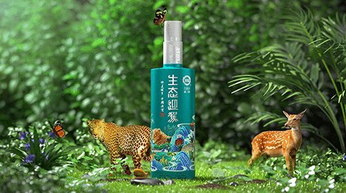 另一處精心的設(shè)計則是產(chǎn)品上的時尚插畫:瓶身上匯聚了世界美酒特色產(chǎn)區(qū)霍山特有的生態(tài)元素,例如:竹海、湖泊、溪流、瀑布、剮水、黃巖洞以及珍稀動物——金錢豹、麝獐、小靈貓等,勾勒出一幅自然、綠色的時尚畫面,生動地講述迎駕的生態(tài)故事,不僅強化了生態(tài)品牌主題概念,也更好地凸顯了年輕化、時尚化的產(chǎn)品特點。