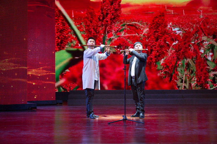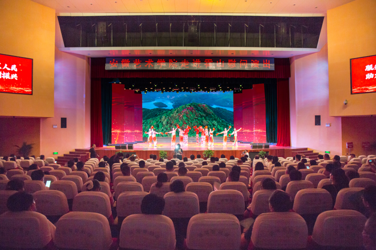 舞蹈《喜迎賓朋到霍山》拉開了演出的帷幕,配樂詩朗誦《愛情的故事》、黃梅戲《天子命詔》、音樂快板《全域旅游在霍山》、舞蹈《黨旗頌》等一個個精彩的節(jié)目輪番上演,演員們精神飽滿,他們用優(yōu)美的舞姿、動聽的歌聲贏得了現(xiàn)場觀眾們的陣陣掌聲。最終,慰問演出在合唱《我和我的祖國》的歌聲中落下帷幕。