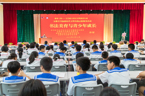 揭牌儀式結(jié)束后,各位書法家現(xiàn)場進(jìn)行了創(chuàng)作,中書協(xié)書法評論與文化傳播委員會委員、省書協(xié)副主席、省書協(xié)學(xué)術(shù)委員會主任、合肥市書協(xié)主席陳智還為佛子嶺鎮(zhèn)中心學(xué)校的師生帶來了一場專題講座,讓師生們充分領(lǐng)悟到書法藝術(shù)的獨(dú)特魅力!