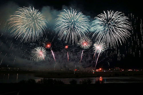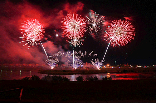 伴隨著音樂聲,一簇又一簇流光溢彩的焰火匯聚成璀璨的星河。煙花接續(xù)驚鳴,燃空更比晝明,星空為幕、煙花作筆,紅的熱烈,綠的清新,藍的深邃,紫的神秘,天然的畫布上瞬間被染上了五彩斑斕的色彩,美輪美奐、絢麗多彩,令人目不暇接,驚嘆不已?,F(xiàn)場觀眾不時發(fā)出陣陣歡呼和贊許聲。